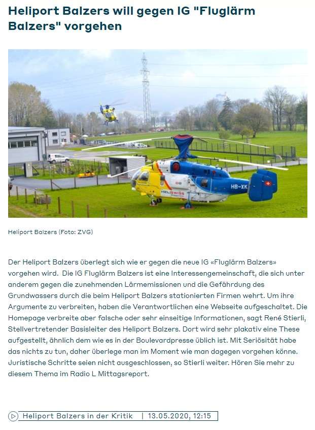 IG Fluglärm Balzers in den Medien