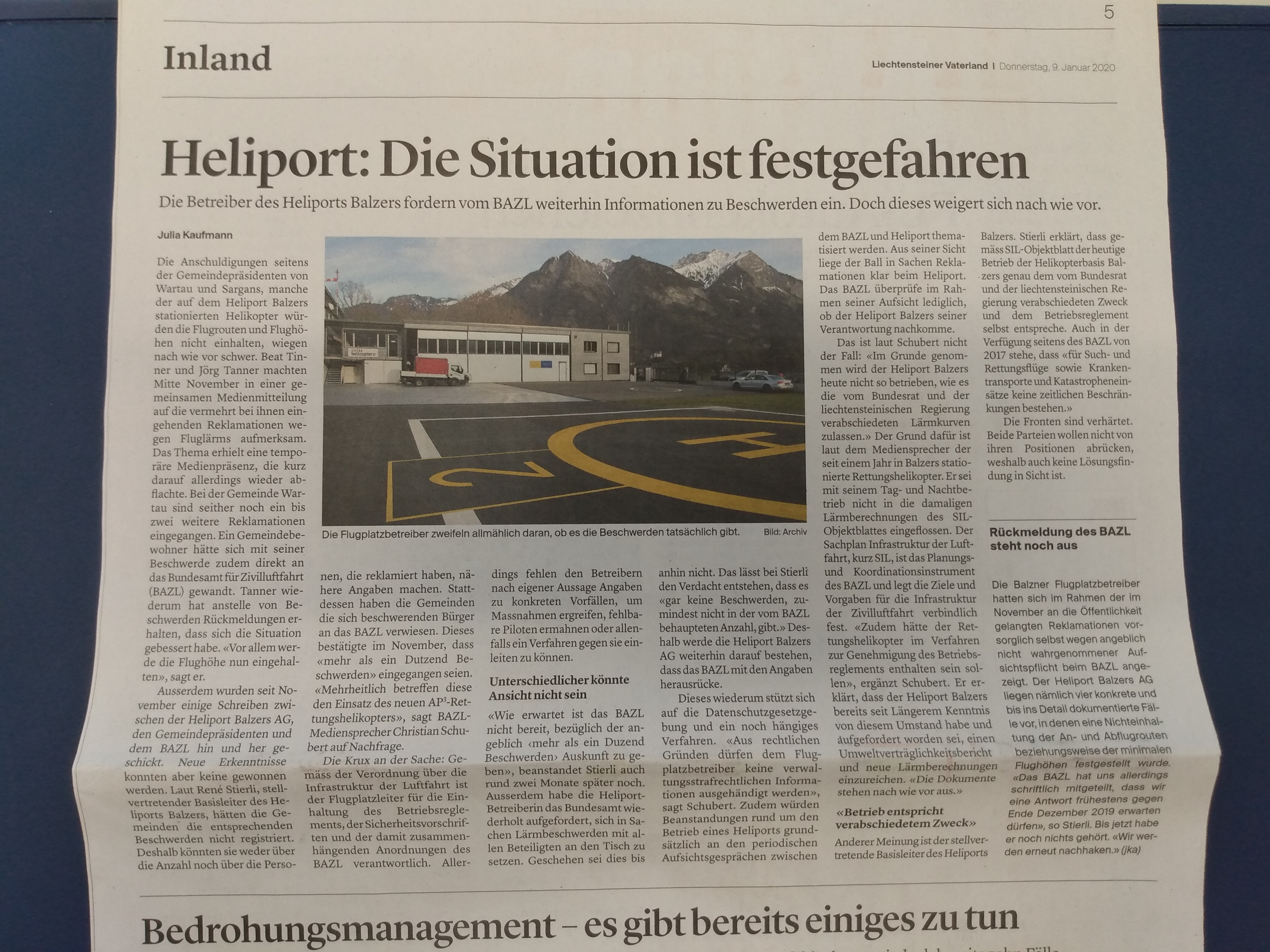 Im Liechtensteinischen Vaterland vom 9. Januar 2020 war zu lesen: